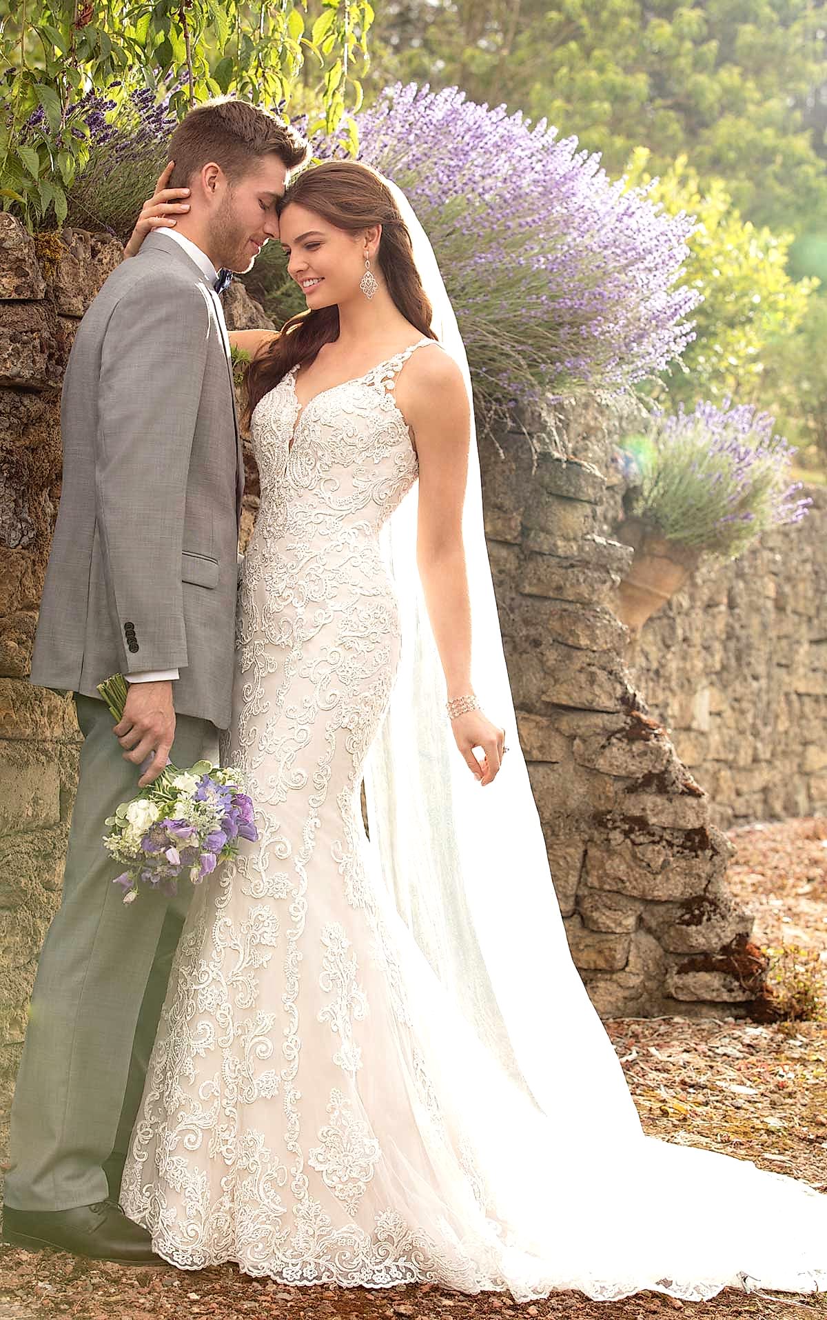 Göz alıcı detaylara, romantik kesimlere sahip, kaplı düğmeler gelinlik modeli….